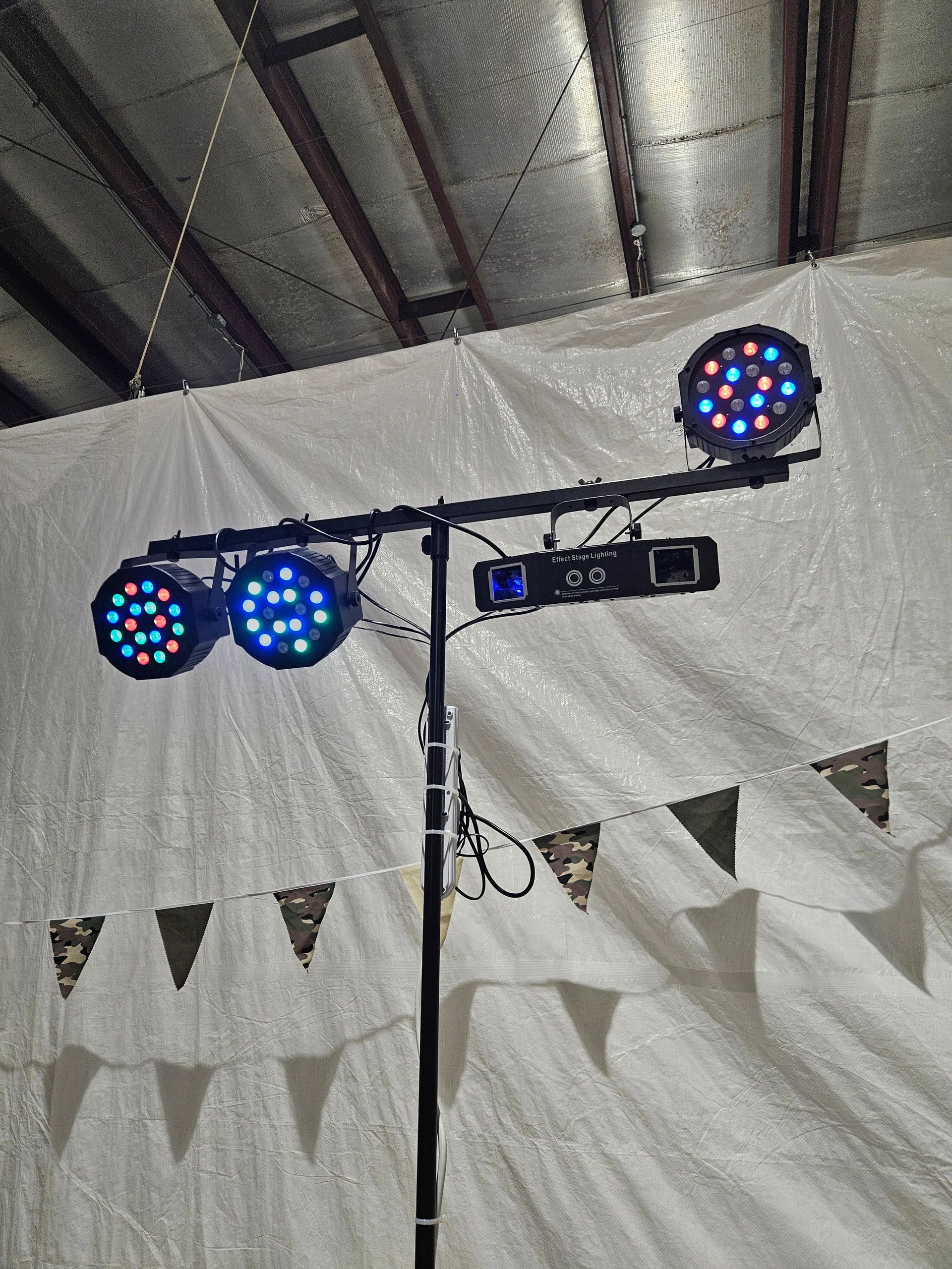 Golden Sound has a variety of lights, from LEDs to strobes to lasers. The lights are controlled by a CO-Z 512 Stage Light Lighting DMX Controller.